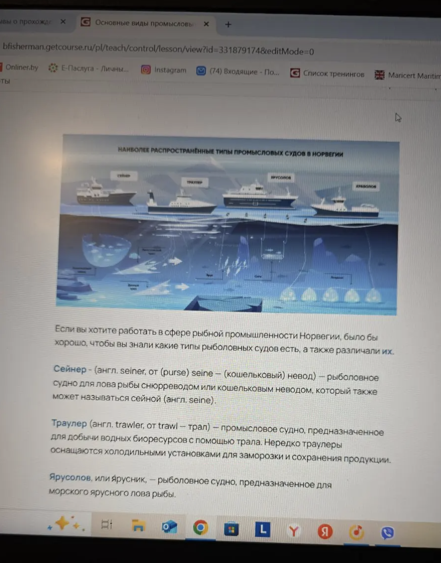 Особенно в области языкового барьера . Кроме того, были рассмотрены основные виды промысловых судов и норвежская таблица классификации морепродуктов.